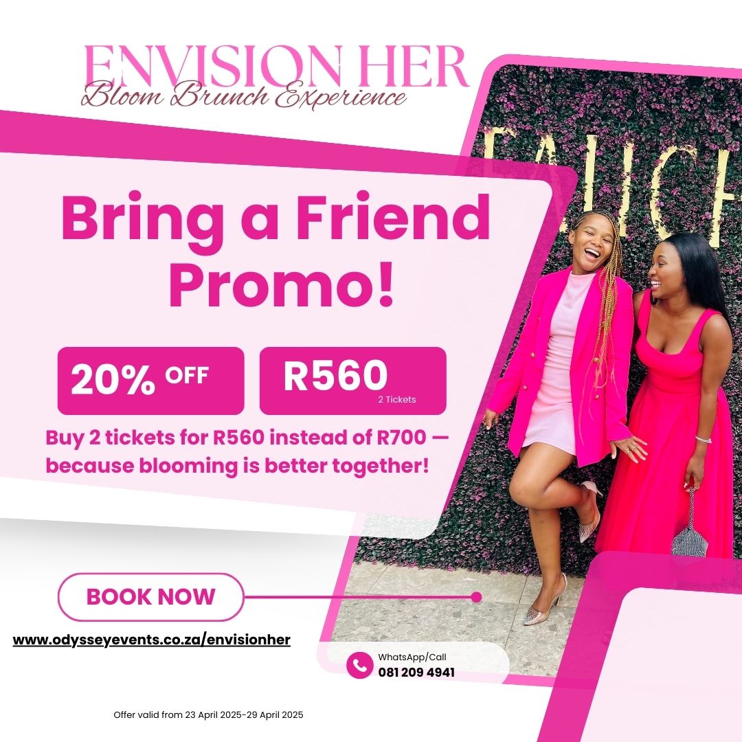 Buy 2 tickets for R560 instead of R700 — because blooming is better together! Offer Valid from 23 April 2025 to 29 April 2025.